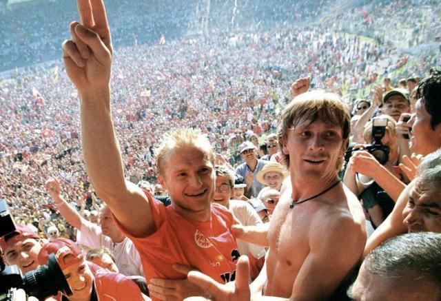 法兰克福球迷的两次激情“入侵”——1999年神奇保级(上图),2022年闯入欧联杯决赛。