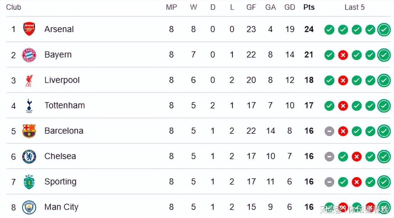 欧足联的积分计算规则是:欧冠、欧联杯、欧协杯每场胜利给2分,平局1分,输球0分。再根据排名给额外奖励。六支英超队在联赛阶段表现强势,阿森纳甚至拿到联赛阶段的第一,积分贡献相当可观。可淘汰赛的6场比赛,让积分增长明显变慢。
